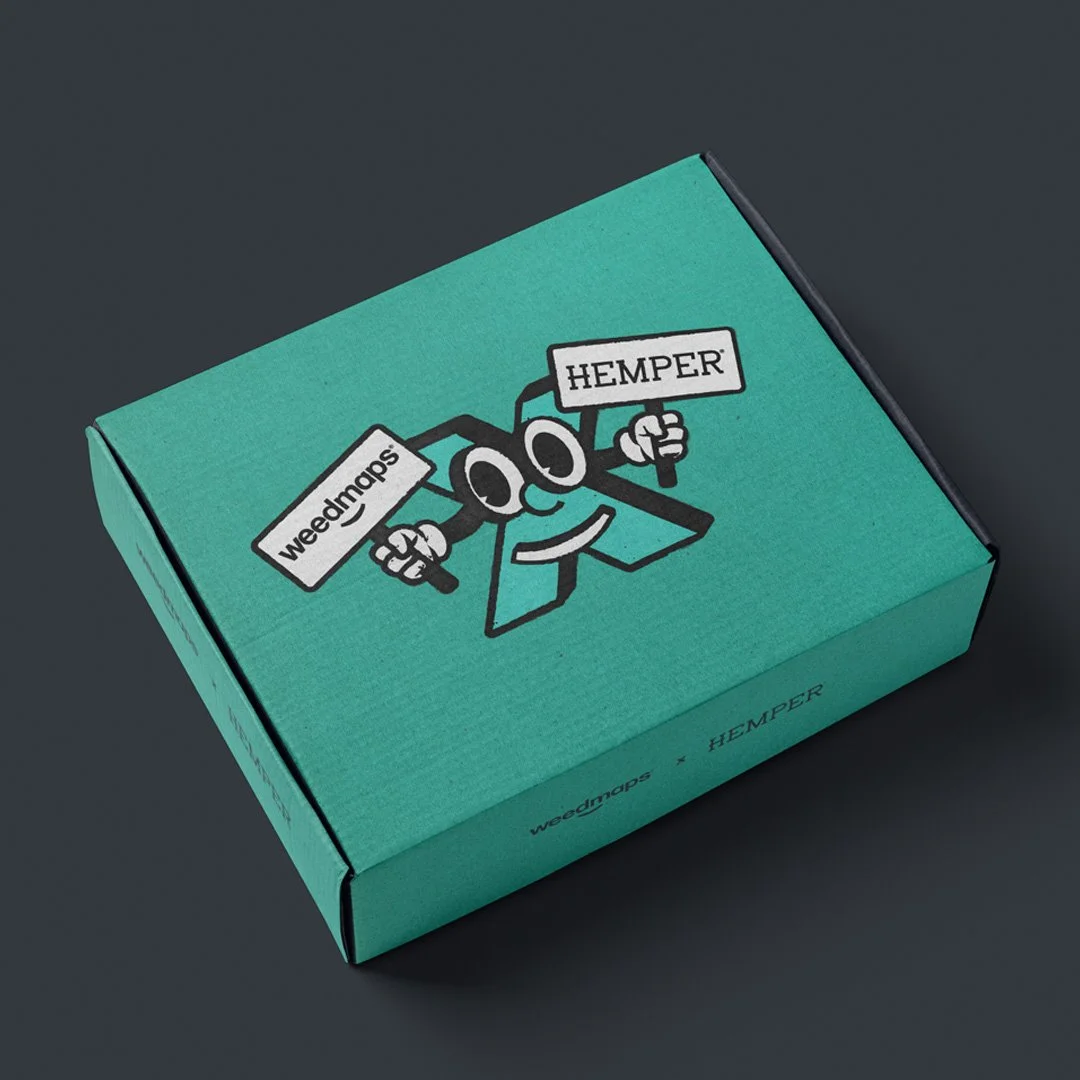 Weedmaps x Hemper collaboration box, integrating clear CTAs with custom illustration styles to elevate the brand collaboration.